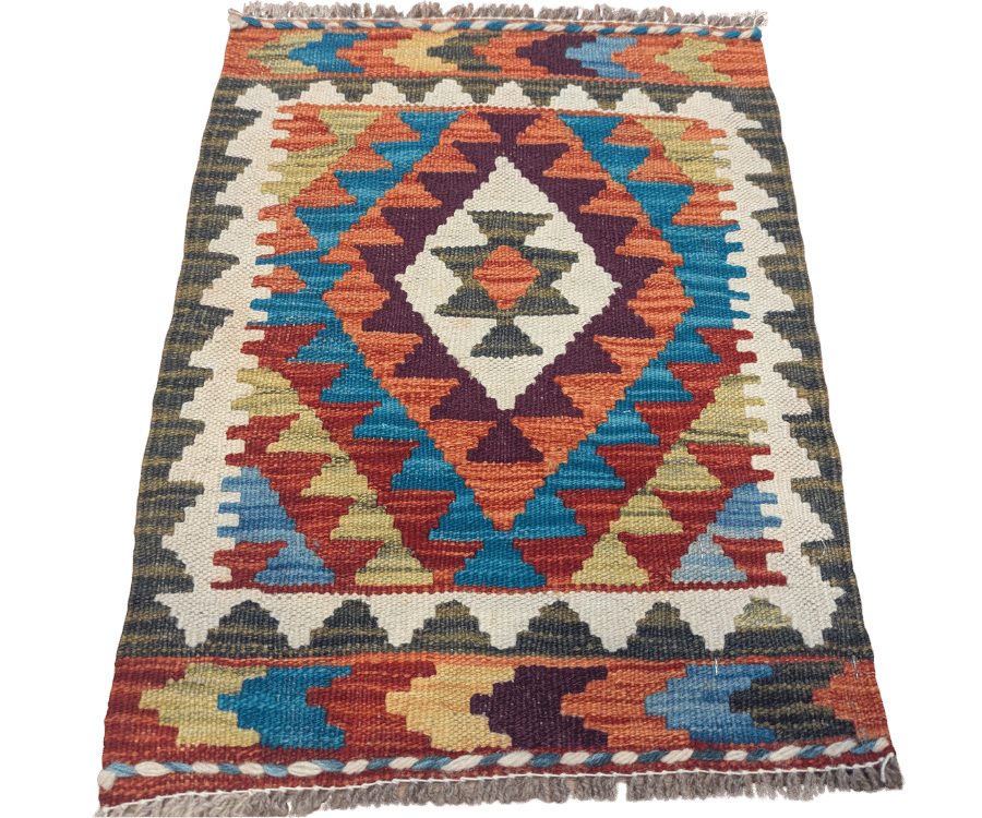 Tissé à la main selon un savoir-faire traditionnel afghan, ce kilim reflète une esthétique authentique et expressive. Son petit format en fait une pièce décorative facile à intégrer, idéale pour dynamiser un espace avec subtilité.