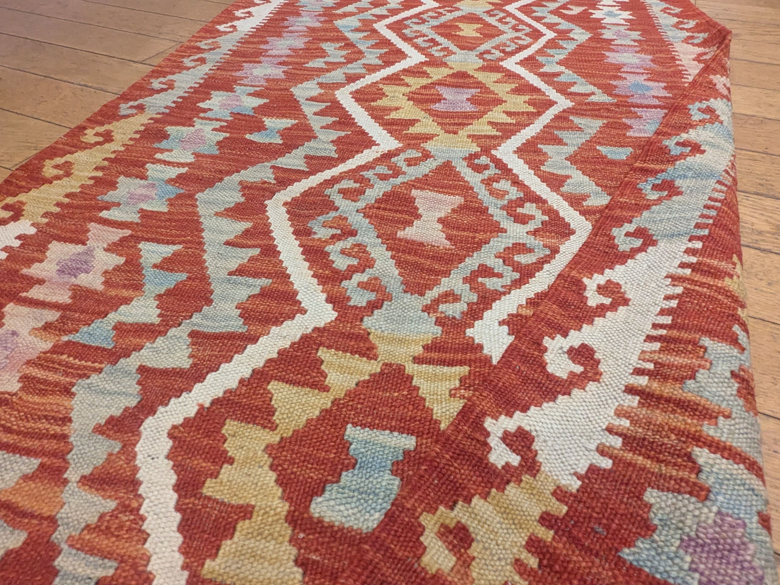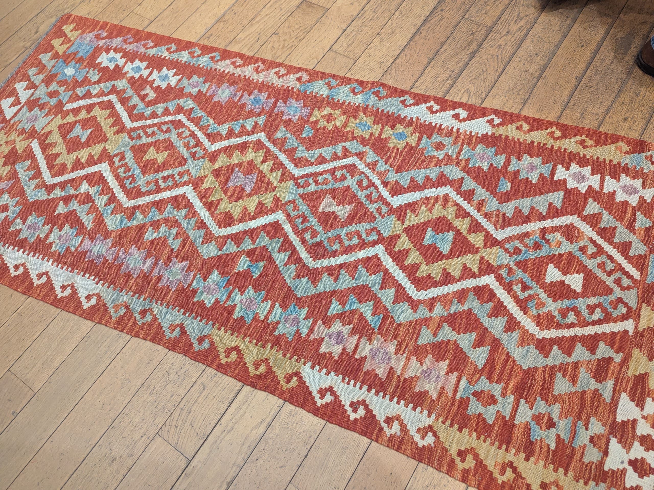 Tissé à la main selon les traditions afghanes, ce kilim incarne un savoir-faire artisanal riche, où chaque motif s’inscrit dans une harmonie globale. Son format couloir en fait une pièce idéale pour habiller des espaces étroits tout en leur apportant caractère et chaleur.