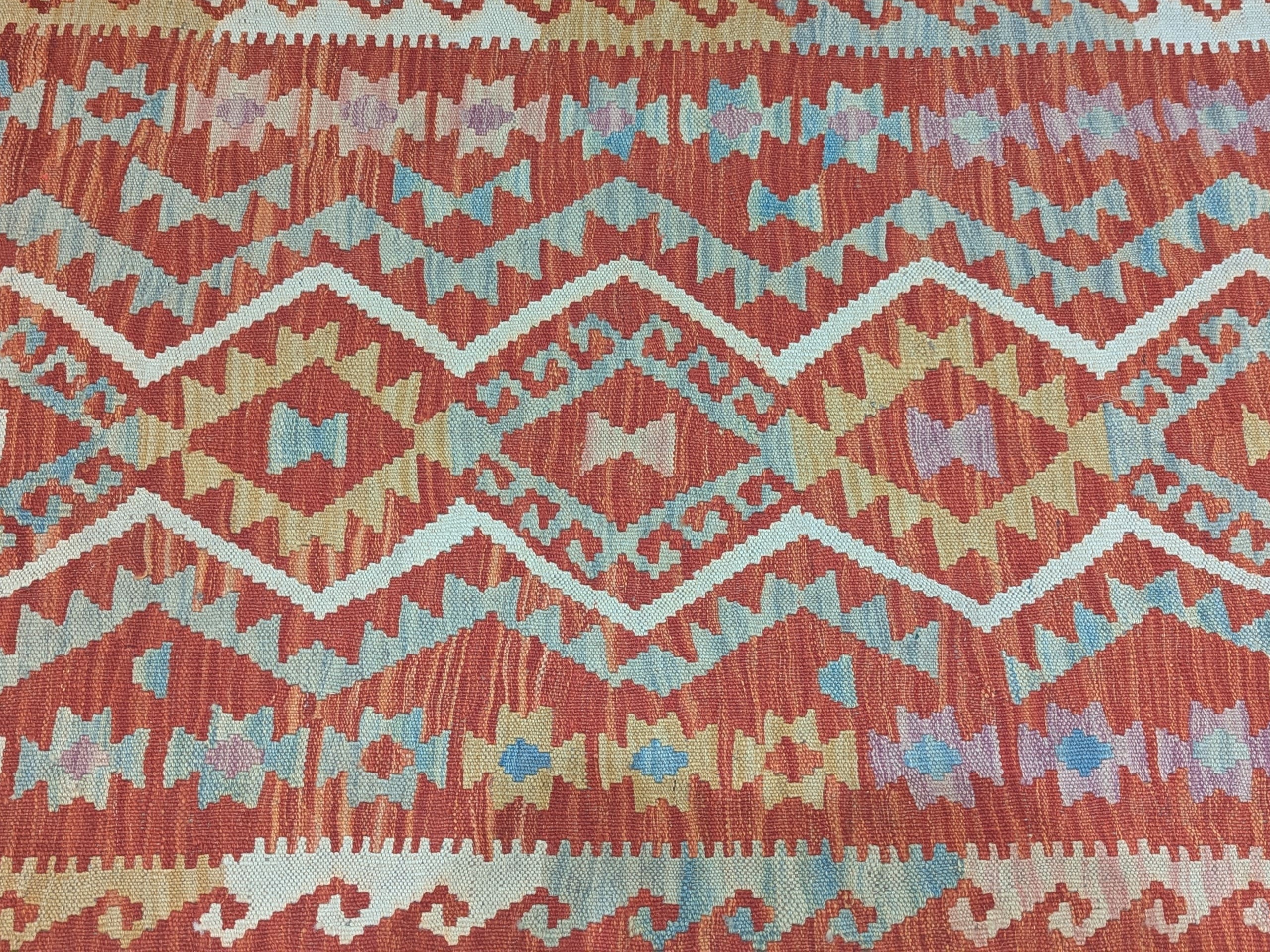 Ce kilim est une pièce expressive et fonctionnelle, idéale pour apporter du rythme et de la chaleur à un intérieur tout en valorisant un savoir-faire artisanal authentique.