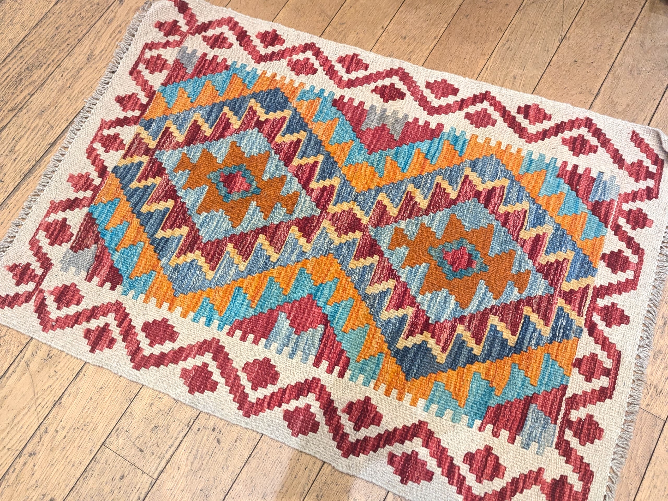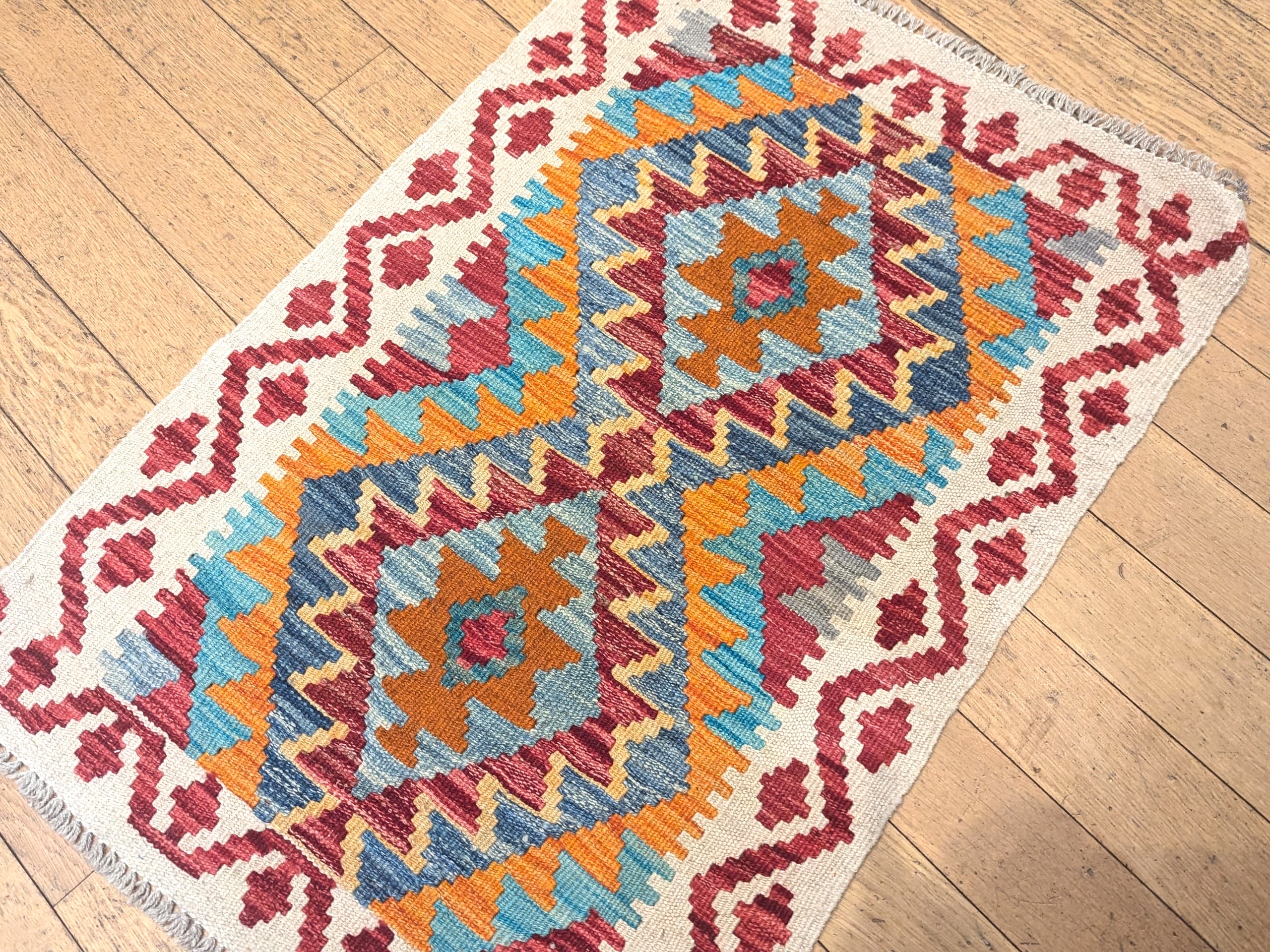 - Une pièce artisanale : Ce kilim reflète un savoir-faire traditionnel avec une belle richesse de détails