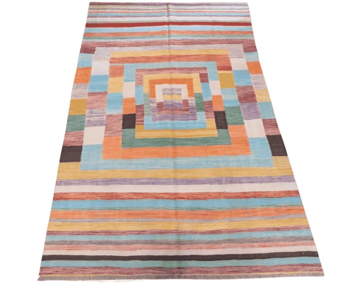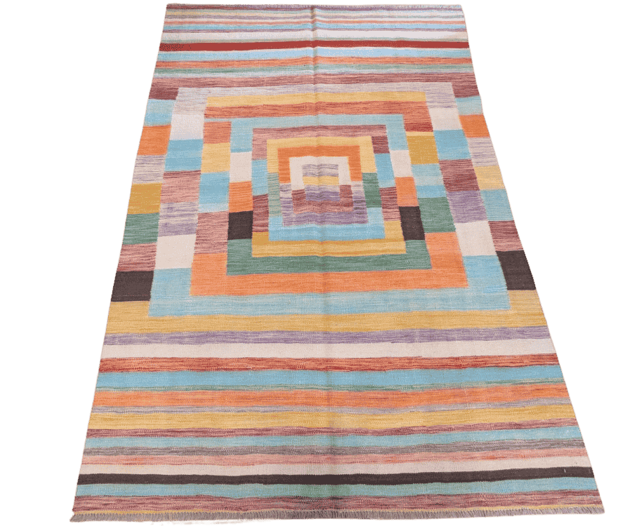 Entièrement tissé à la main en Afghanistan, ce kilim témoigne d’un artisanat exceptionnel et d’une qualité durable.