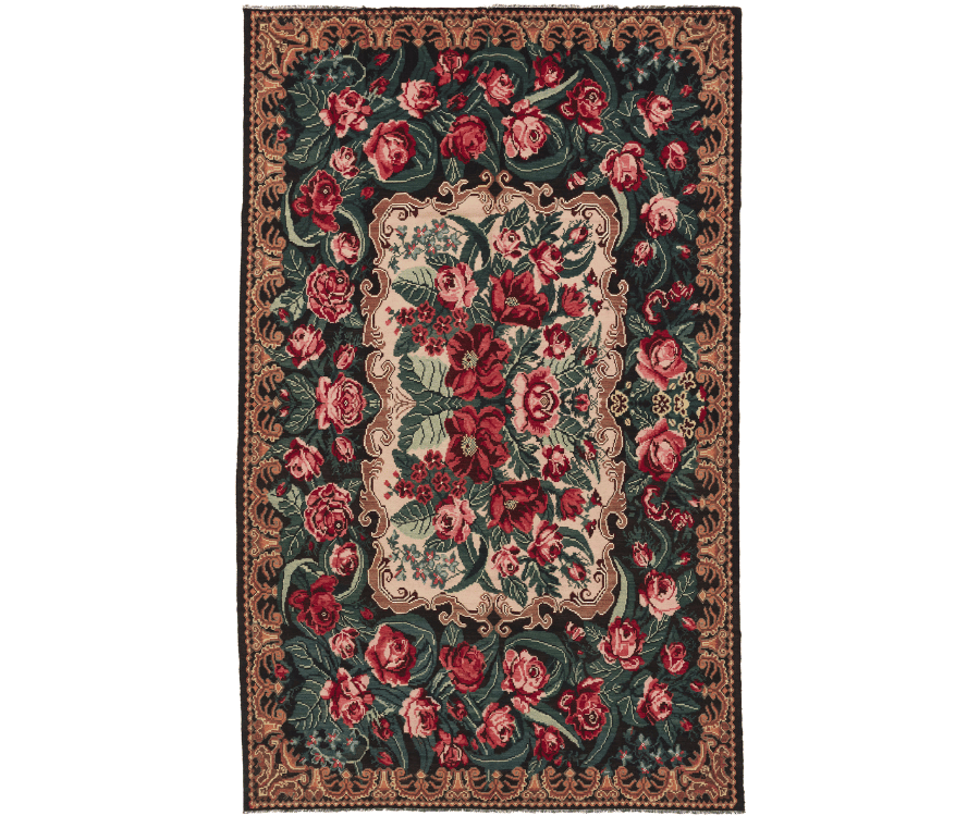 Ce tapis moldave est bien plus qu’un élément décoratif : c’est une œuvre tissée à la main qui raconte une histoire de tradition et de beauté florale, avec une intensité rare.