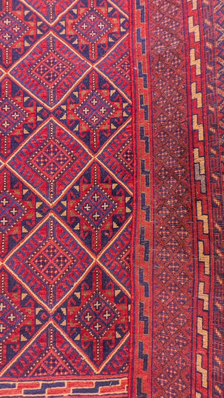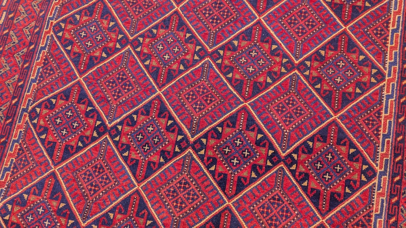 - Une profondeur de couleurs : Les contrastes entre rouge et bleu renforcent l’intensité du tapis.
