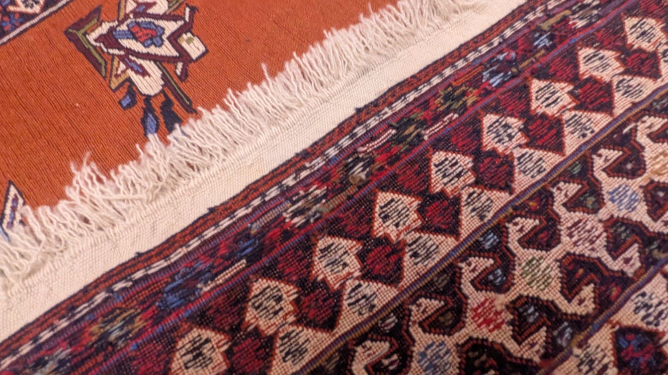 La bordure, finement travaillée, encadre l’ensemble avec précision et équilibre. La technique Soumak, reconnaissable à son relief léger et à son aspect presque brodé, apporte texture et robustesse, idéale pour un usage quotidien tout en conservant une grande finesse de détail.