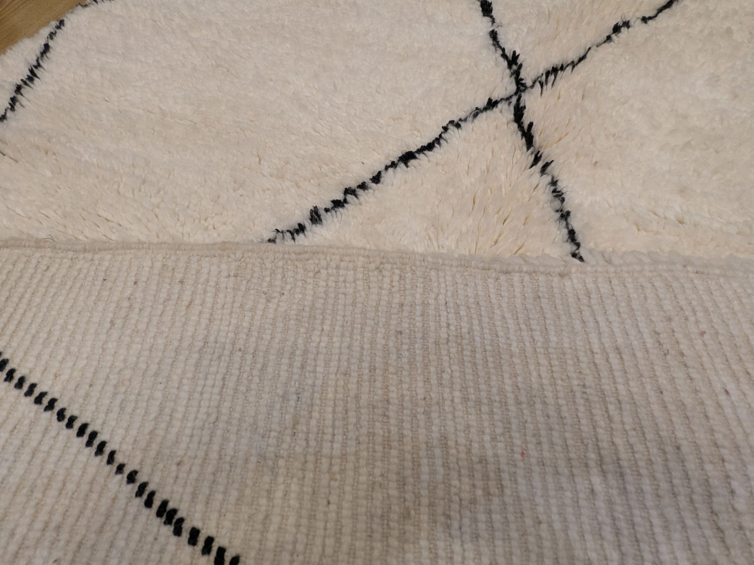 Ce tapis Beni Ouarain est une pièce authentique et intemporelle, parfaite pour ceux qui recherchent un tapis lumineux, graphique et profondément confortable.