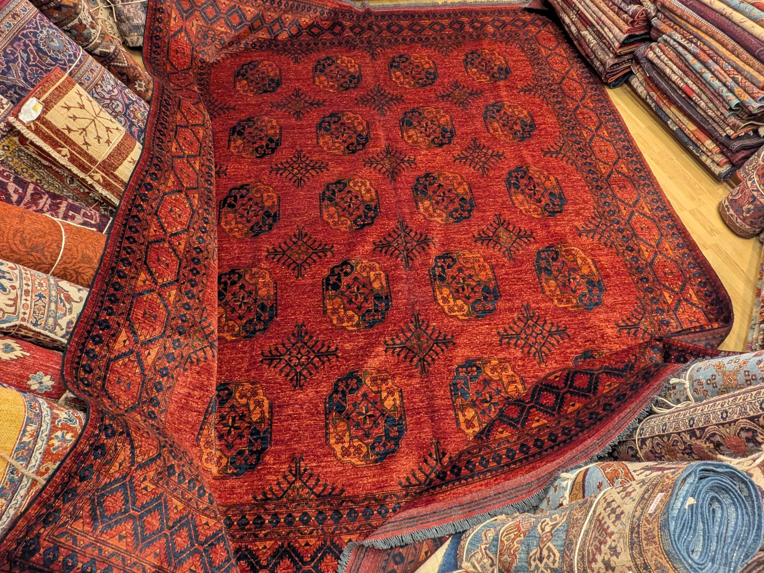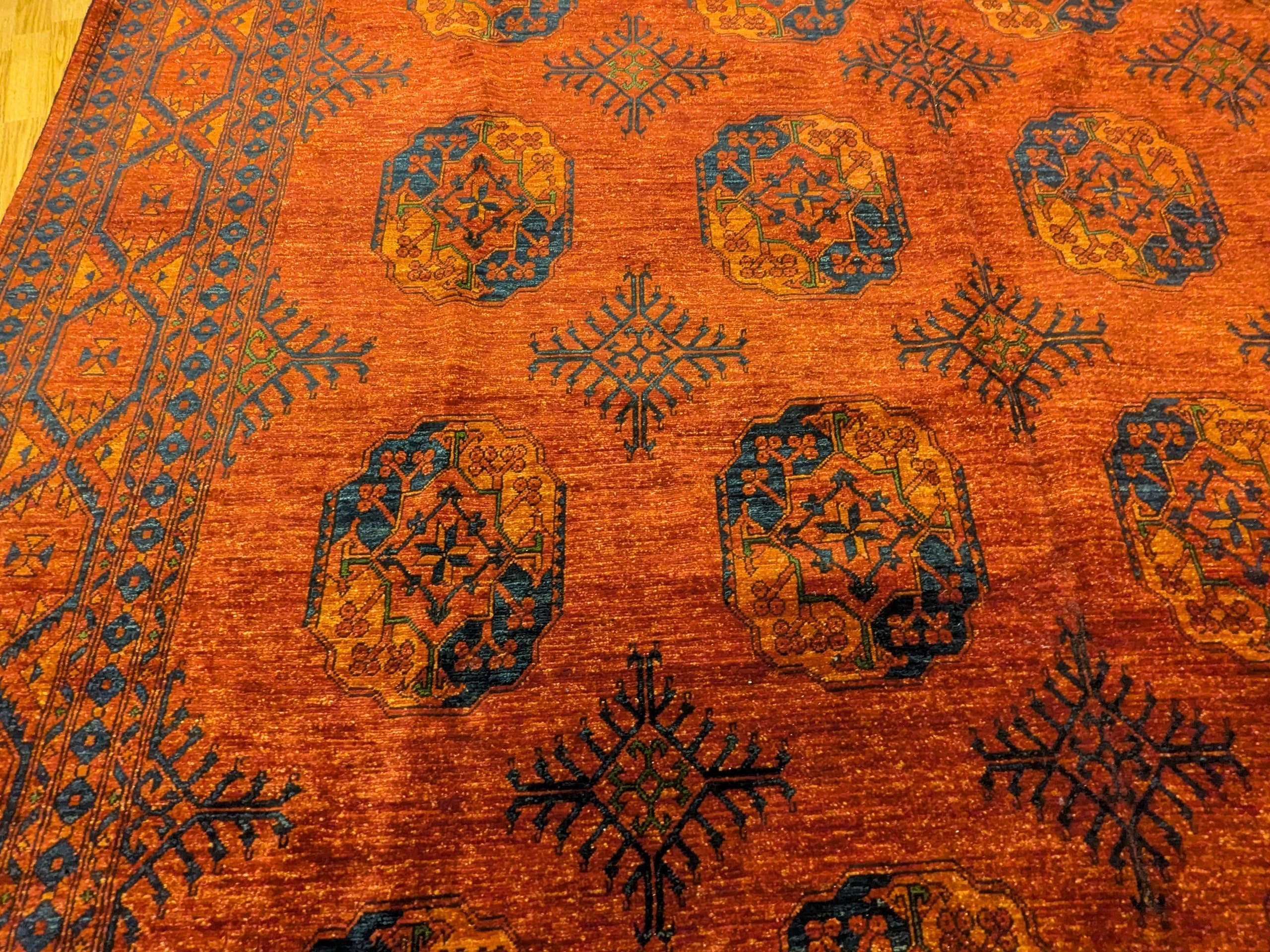 Ce tapis Ersari noué main témoigne du savoir-faire ancestral des artisans afghans. Son motif répétitif emblématique et ses teintes chaleureuses en font une pièce intemporelle, capable d’apporter caractère et authenticité à tout espace de vie.