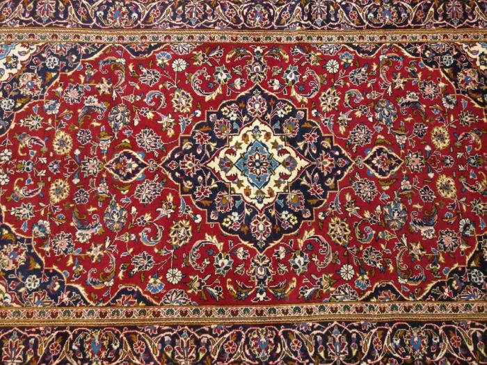 Grand classique, le tapis Kechan représente parfaitement le tapis traditionnel iranien. Celui que nous vous proposons aujourd’hui se compose d’un beau médaillon central entouré de motifs floraux très raffinés. Vous succomberez par ses couleurs qui se mariera facilement avec votre décoration. N’hésitez pas à venir le dévouvrir dans notre galerie à Paris 6e. Nous avons des Kechan également dans d’autres formats.