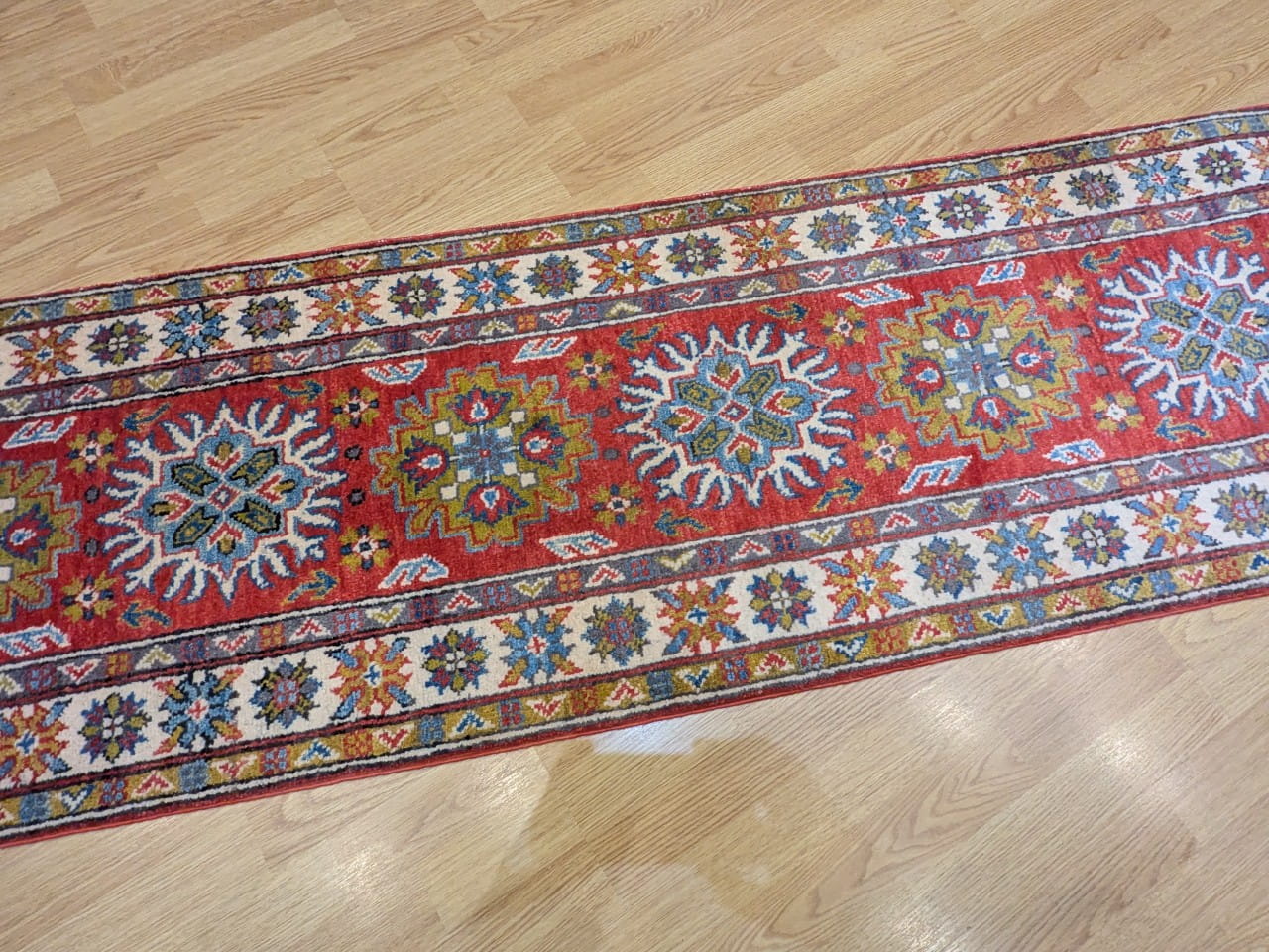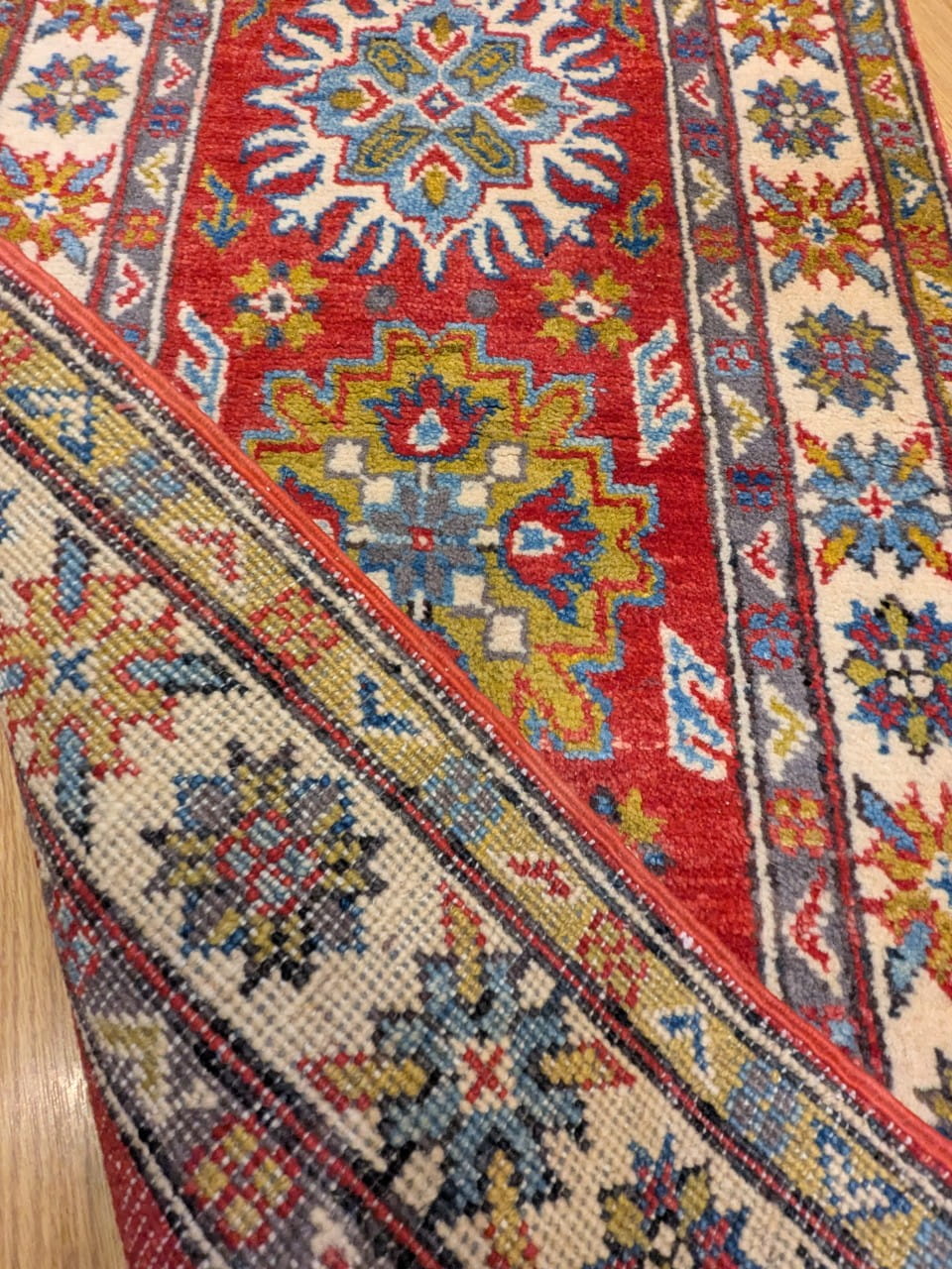 Un style traditionnel éclatant : Les motifs kazak apportent un fort caractère visuel, entre artisanat et puissance graphique.