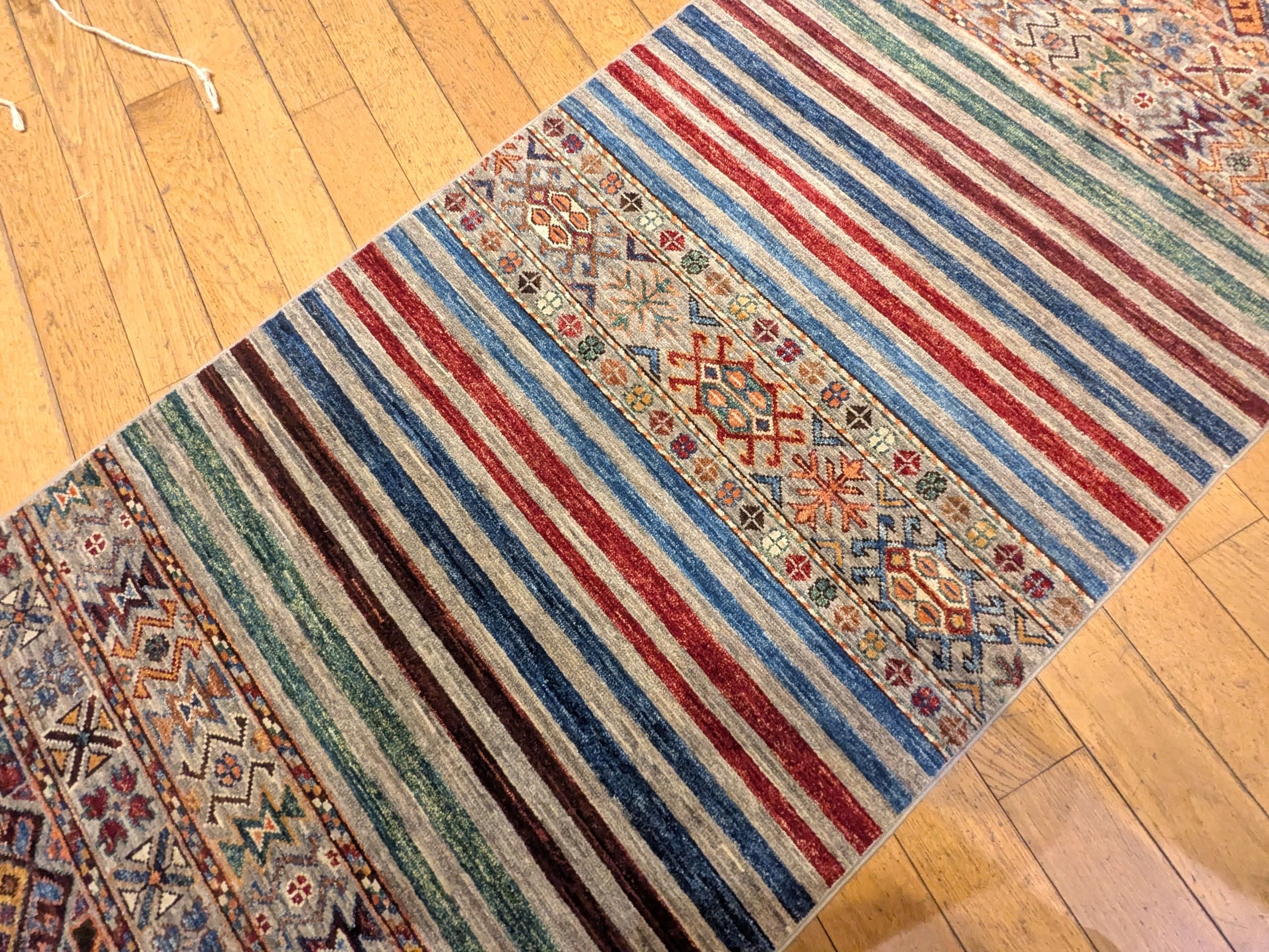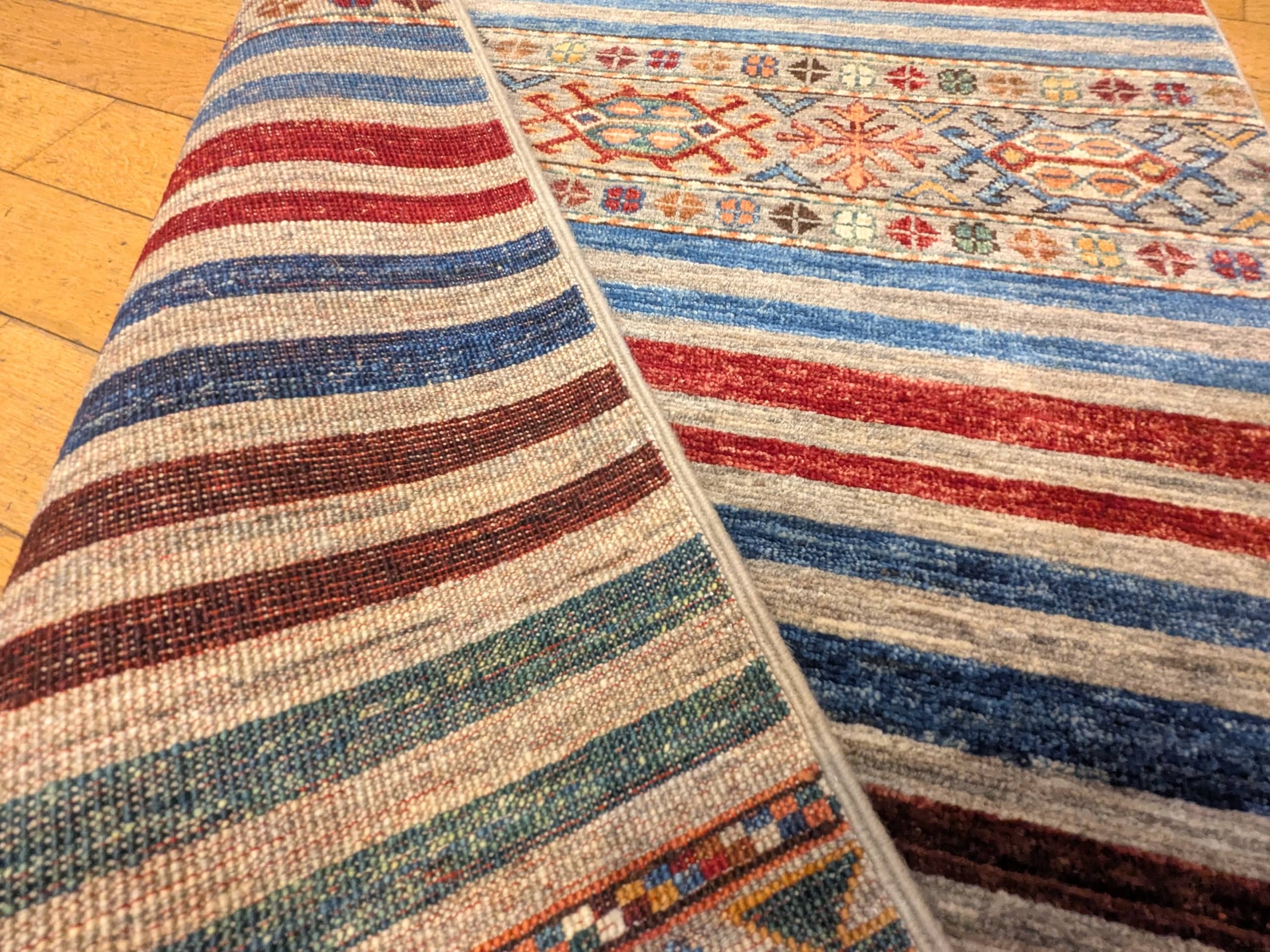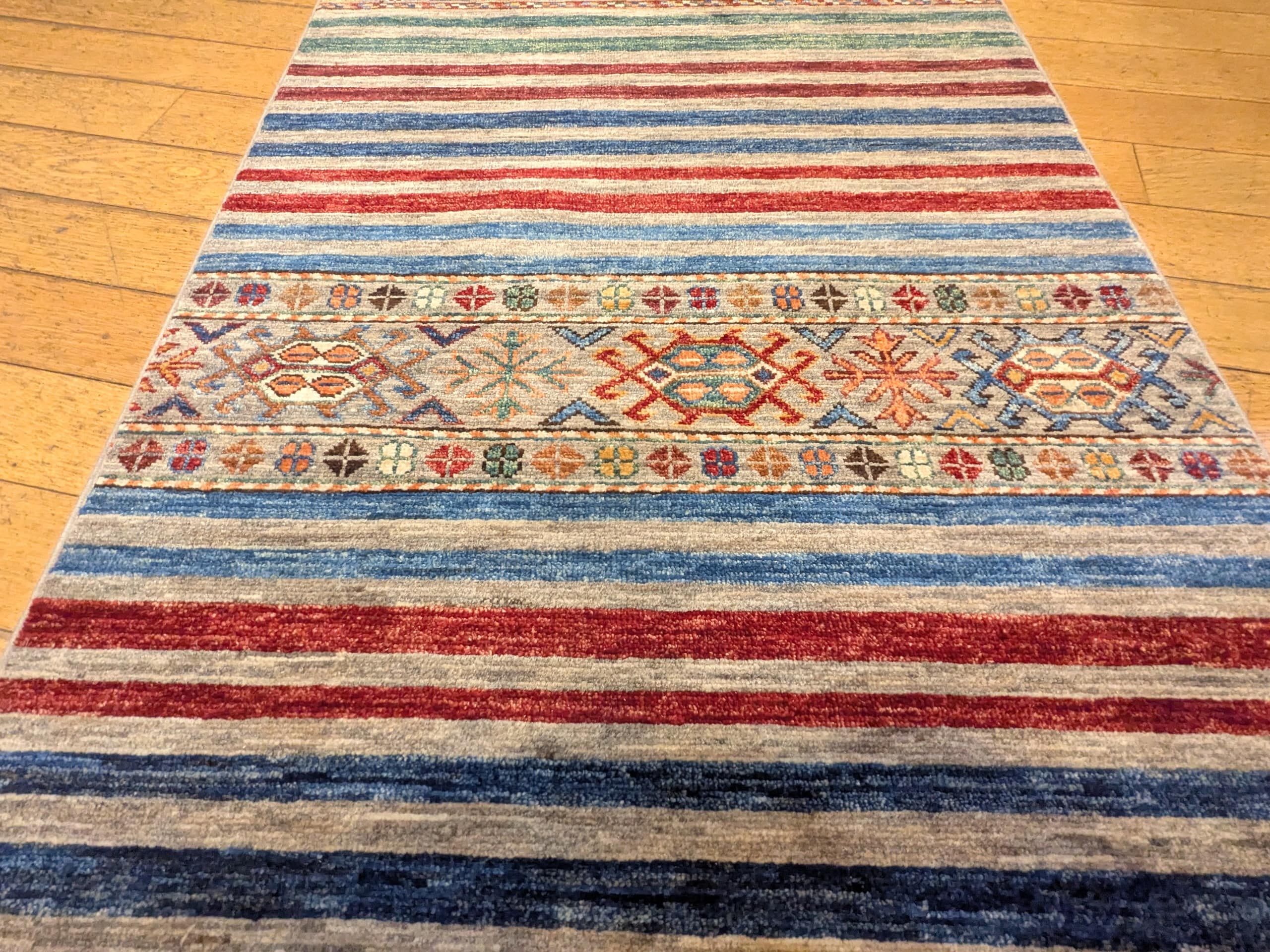 Ce tapis Khorjin incarne la richesse du patrimoine textile afghan, avec un style graphique et coloré qui séduit par son originalité et sa force décorative.