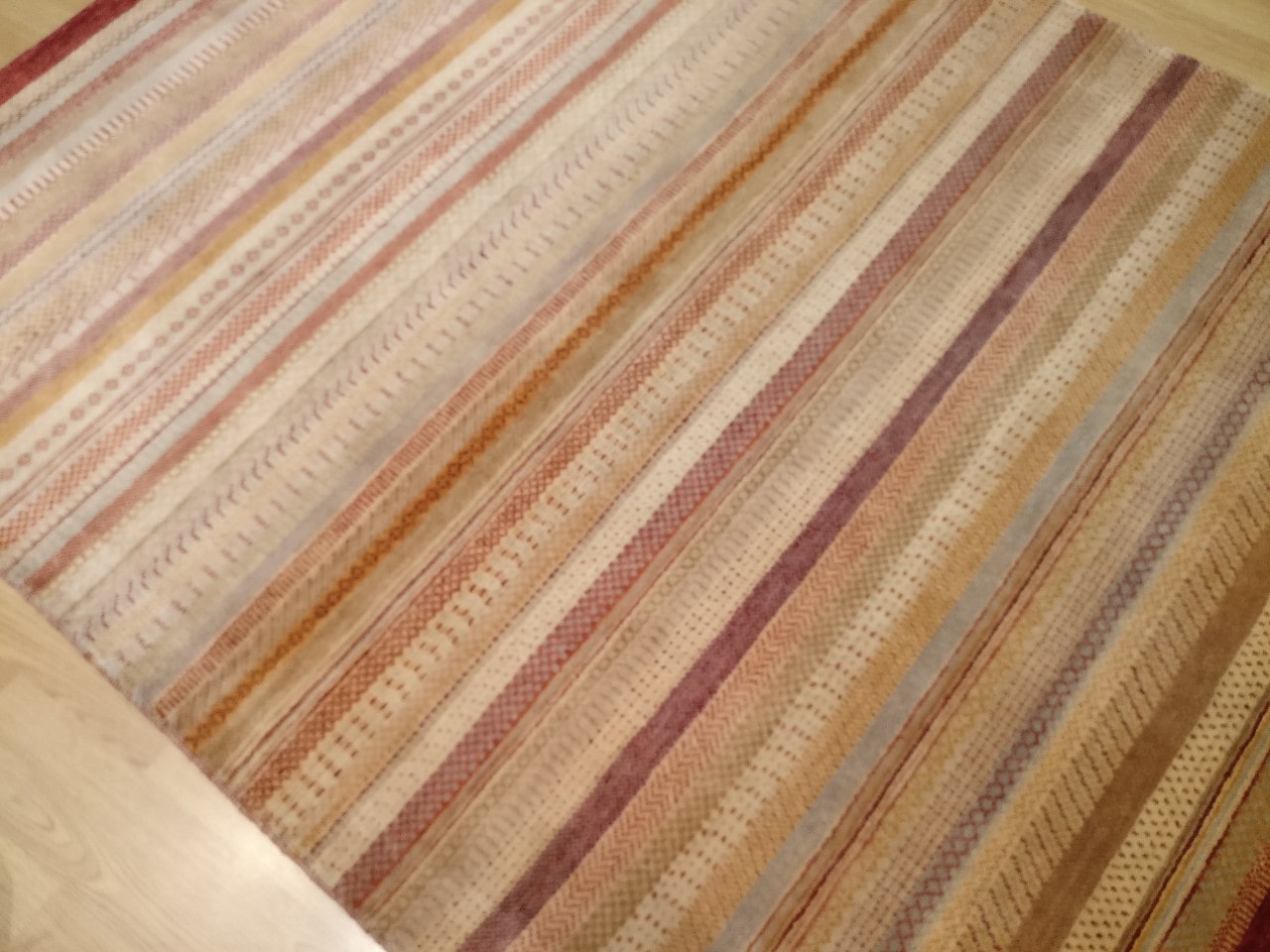 Composé de plusieurs bandes de couleurs avec petits motifs , ce beau tapis afghan moderne séduit avec ce mélange subtil entre tapis moderne et tapis classique.