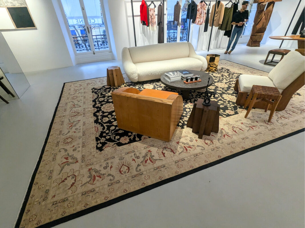 Dans ce grand magasin de mode de luxe parisien, il s’agissait d’aménager un espace d’accueil, structuré autour d’un canapé aux lignes sculpturales. Le tapis choisi, issu de notre collection de Ziegler, vient naturellement ancrer cet ensemble avec élégance.
