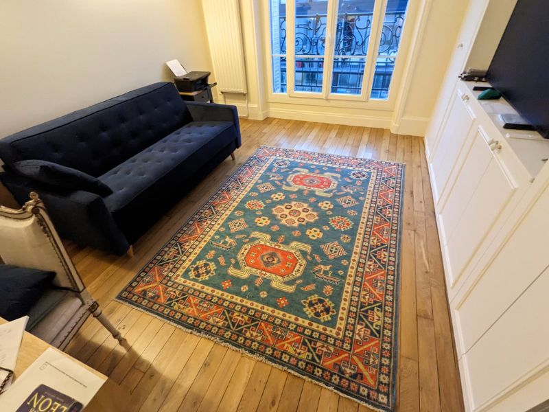 View Large Kazak Tapis Tapis d'orient Structurer un espace repas avec caractère grâce à un tapis kazak afghan noué main